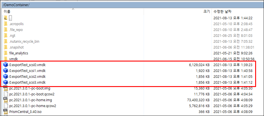 AHV > VMWare 이관 시 : vmdk 파일 포맷으로 export