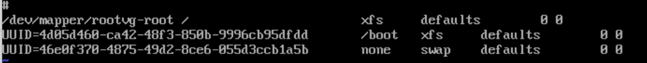 4) /etc/fstab 수정 >> UUID로 되어 있는 설정 변경